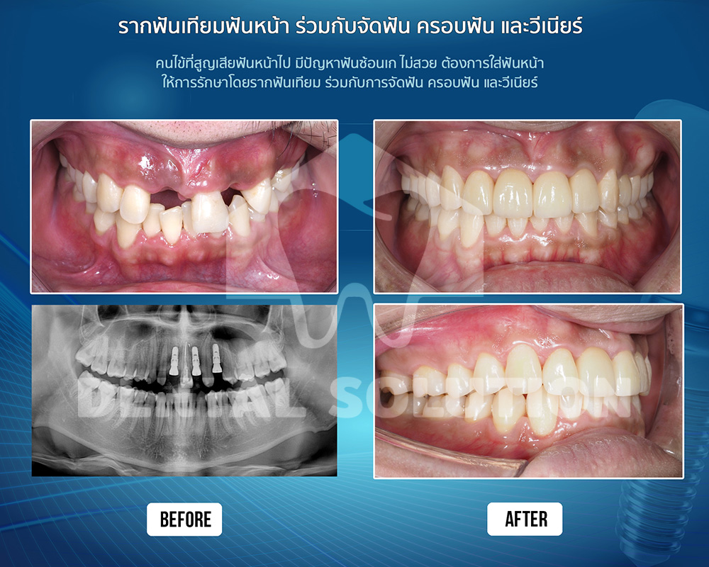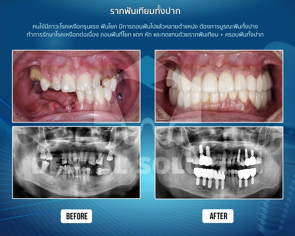ไม่ว่าจะเป็นเคสรากฟันเทียม 1 ซี่ รากฟันเทียมฟันกราม รากฟันเทียมฟันหน้า สะพานรากฟันเทียม รากฟันเทียมรองรับฟันปลอมถอดได้ การใส่ฟันทั้งขากรรไกร All-on-4 All-on-X